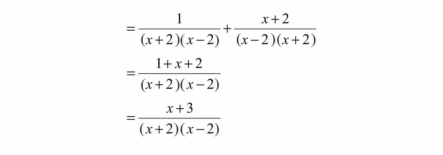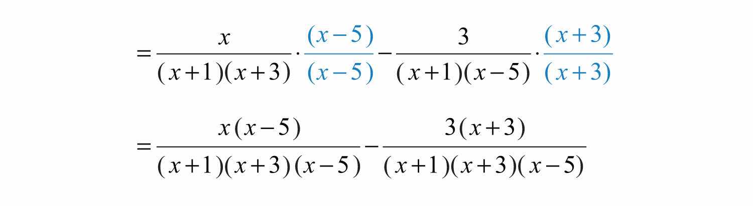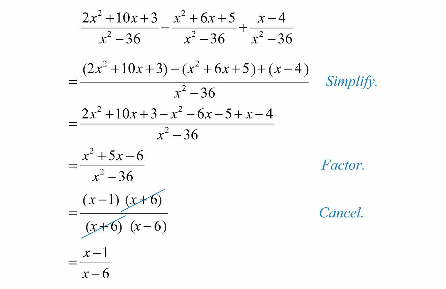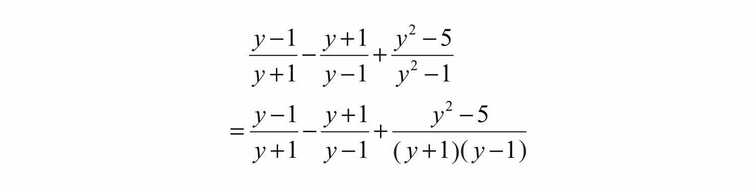 Solution: Subtract and add the numerators. Make use of parentheses and write the result over the common denominator, .