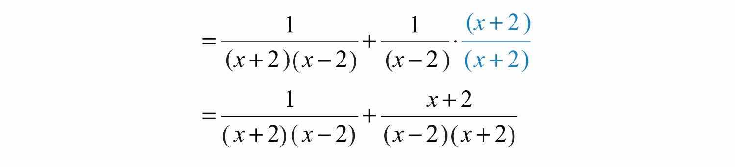 Solution: In this example, the . To obtain equivalent terms with this common denominator, multiply the first term by and the second term by .