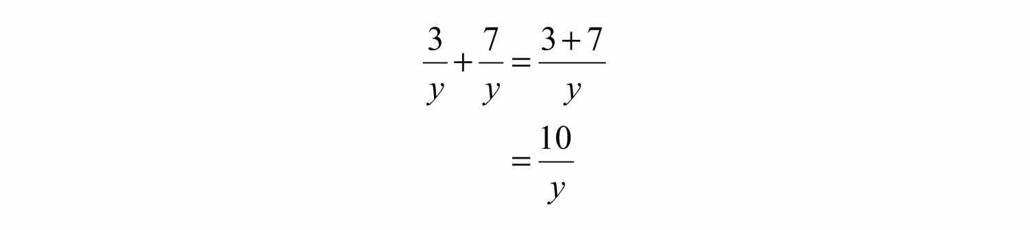 Solution: Add the numerators 3 and 7, and write the result over the common denominator, y.