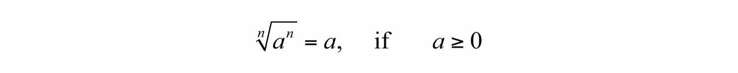 For any integer , we define the nth rootThe number that, when raised to the nth power, yields the original number. of a positive real number as that number that when raised to the nth power yields the original number. Given any nonnegative real number a, we have the following property: