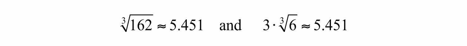It may be the case that the radicand is not a perfect cube. If an integer is not a perfect cube, then its cube root will be irrational. For example, is an irrational number which can be approximated on most calculators using the root button. Depending on the calculator, we typically type in the index prior to pushing the button and then the radicand as follows: