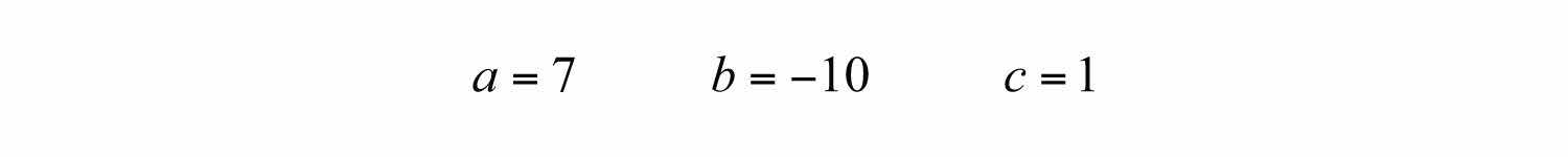 Solution: Begin by identifying a, b, and c as the coefficients of each term. Here