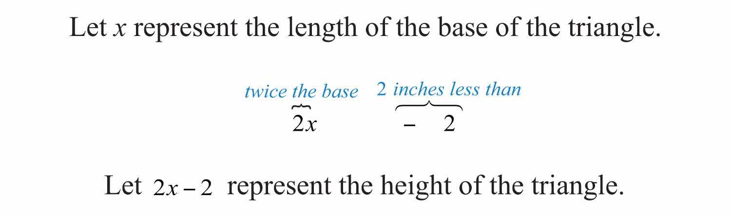 Example 10: The height of a triangle is 2 inches less than twice the length of its base. If the total area of the triangle is 11 square inches, then find the lengths of the base and height. Round answers to the nearest hundredth.