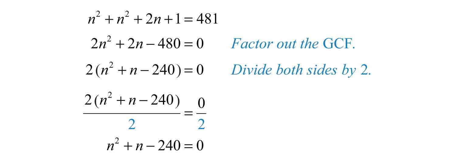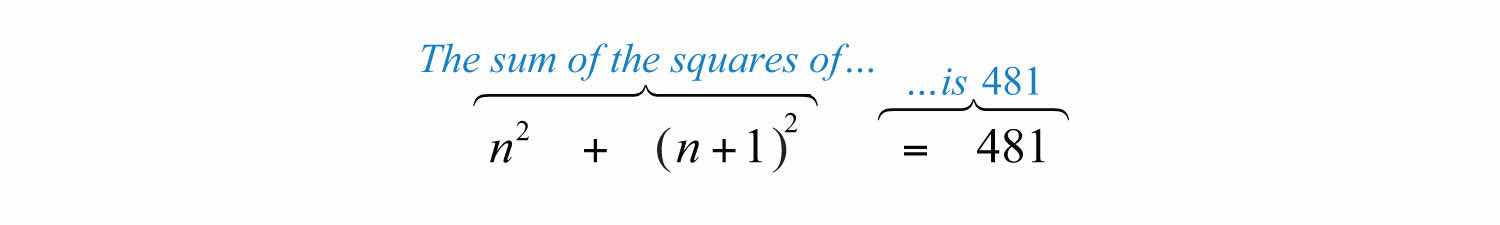 Example 11: The sum of the squares of two consecutive positive integers is 481. Find the integers.