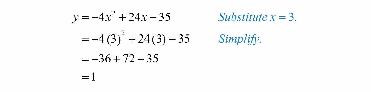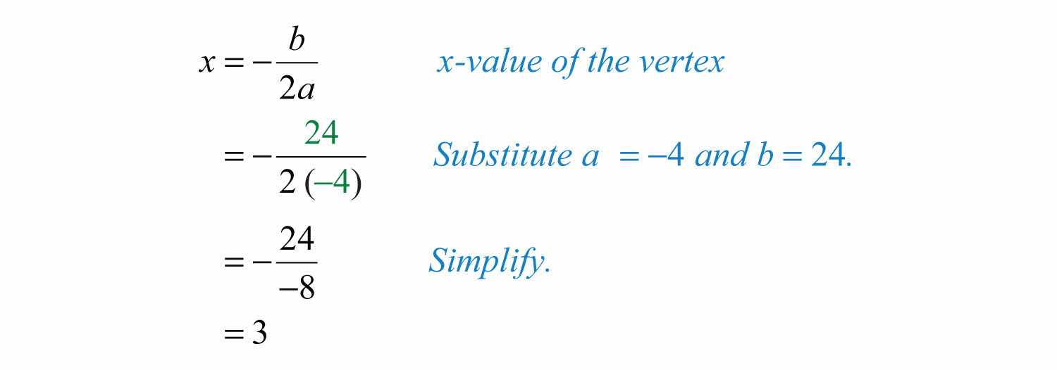 Solution: Since a = −4, we know that the parabola opens downward and there will be a maximum y-value. To find it, we first find the x-value of the vertex.