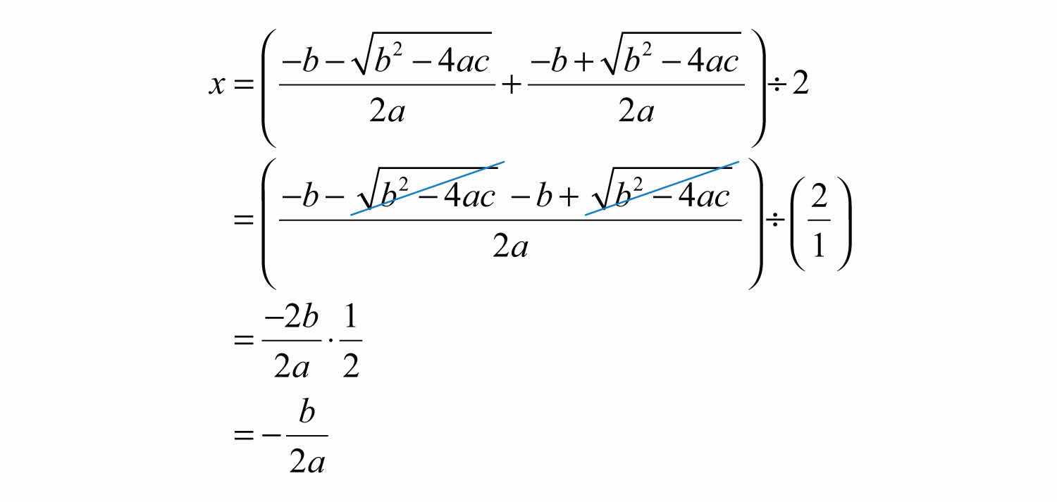 Next, recall that the x-intercepts, if they exist, can be found by setting . Doing this, we have , which has general solutions given by the quadratic formula, . Therefore, the x-intercepts have this general form: