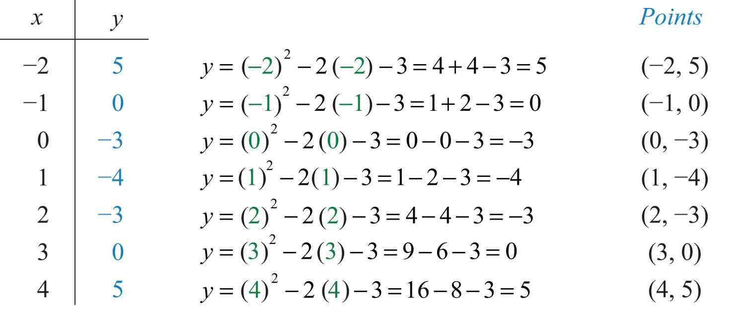 Solution: In this example, choose the x-values {−2, −1, 0, 1, 2, 3, 4} and calculate the corresponding y-values.