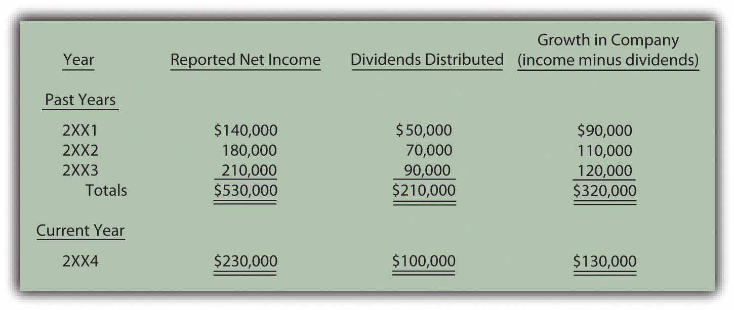 Answer: In its three prior years of existence, Davidson Groceries’ net assets increased by a total of $320,000 as a result of its operating activities. As can be seen here, the company generated total profit during this period of $530,000 while distributing dividends to shareholders amounting to $210,000, an increase of $320,000. Net assets rose further during the current year (2XX4) as Davidson Groceries made an additional profit (see also Figure 3.1 "Income Statement") of $230,000 but distributed $100,000 in dividends.