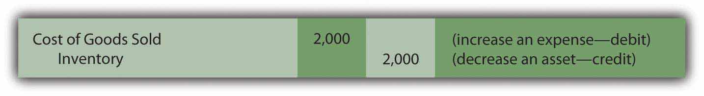 At the same time, inventory costing $2,000 is surrendered by the company. The reduction of any asset is recorded through a credit. The expense resulting from the asset outflow has been identified previously as “cost of goods sold.” Like any expense, it is entered into the accounting system through a debit.