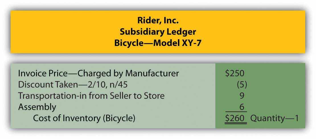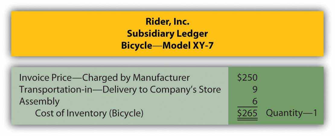 In accounting for the acquisition of inventory, cost includes all normal and necessary amounts incurred to get the item into the condition and position to be sold. Hence, by the time this bicycle has reached Rider’s retail location and been readied for sale, its cost to the sporting goods company is $265.