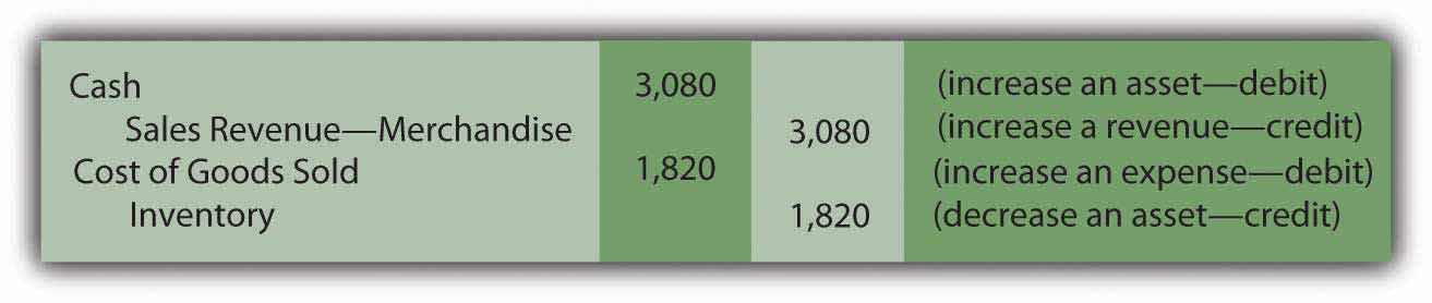 In this example, bicycles had been acquired by Rider Inc. and seven of them, costing $260 each (a total of $1,820), are sold to a customer for $440 apiece or $3,080. When a perpetual system is in use, two journal entries are prepared at the time of this transaction: one for the sale and a second to shift the cost of the inventory from asset to expense.