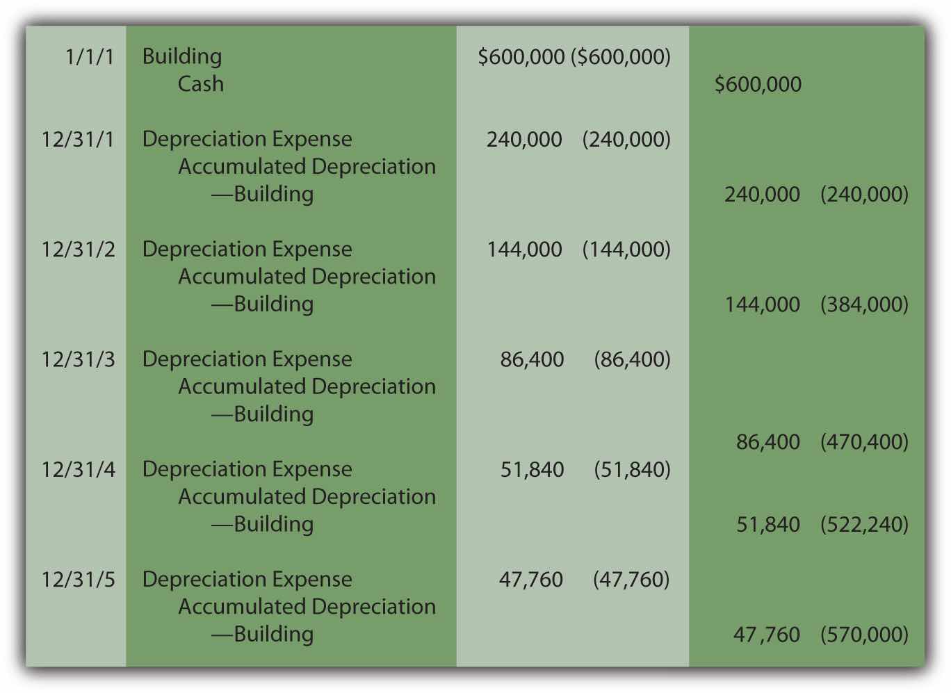 ($600,000 – $0) = $600,000 × 2/5 = $240,000 depreciation expenseYear Two: