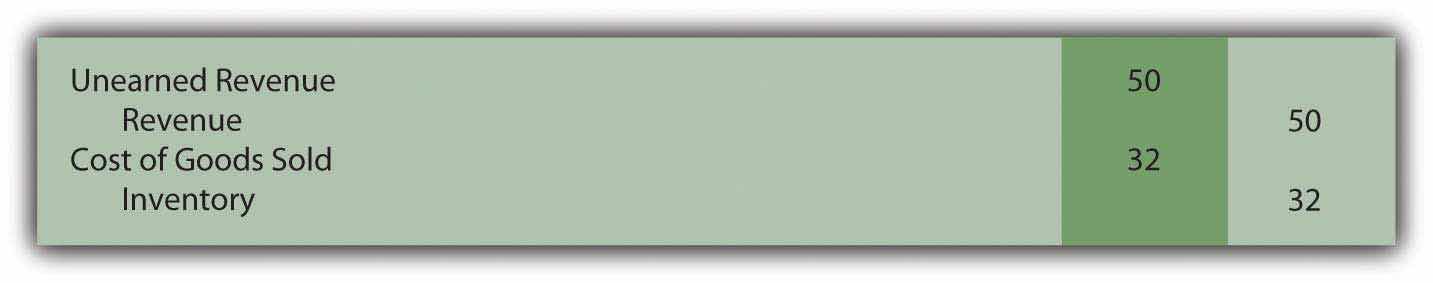 Over time, customers will present their gift cards for selected merchandise. Assume that a person uses the first $50 card to buy goods which had originally cost the company only $32. Upon redemption, the liability is satisfied and the revenue can be recognized. The obligation is met and the earning process has been substantially completed. The second entry below presumes a perpetual inventory system is in use.