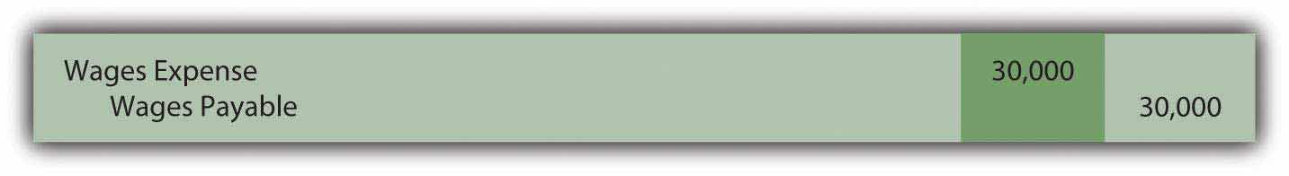 To illustrate, assume a large group of employees earns a total of $10,000 per day. They work Monday through Friday with payment made on the final day of each week. If the company’s year ends on Wednesday, an adjustment is necessary so that the expense on the income statement and the liability on the balance sheet are both presented fairly for the three days that have passed. The following adjustment is made for $30,000 ($10,000 per day for three days) so that the debt incurred for salaries in the first year is reported properly.
