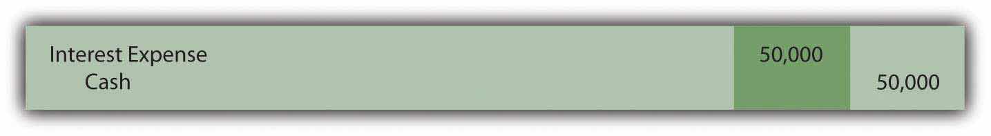 Here, Smith Corporation must pay $50,000 per year in interest ($1 million × 5 percent) for four years and then the $1 million face value: