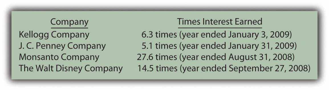 Figure 15.13 Recent Times Interest Earned for Several Prominent Companies