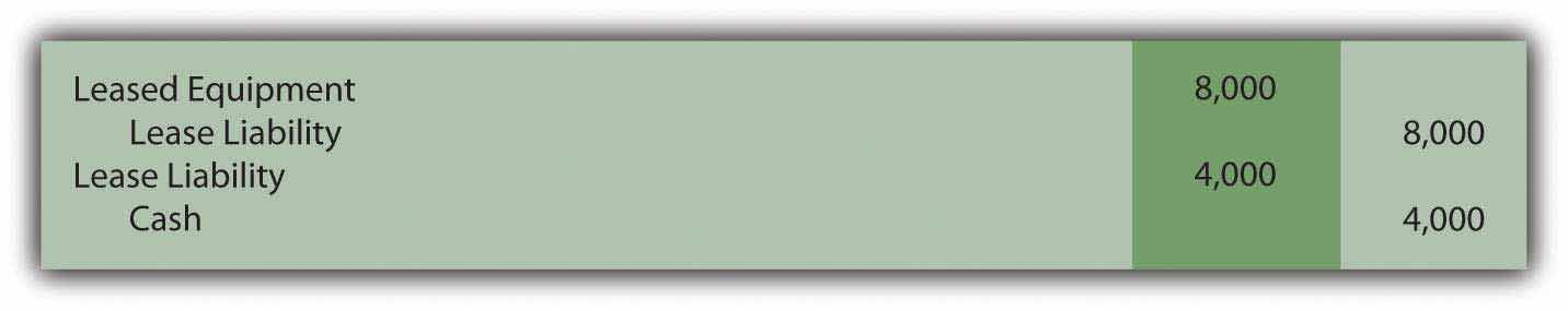 For example, as mentioned at the start of this chapter, Sears Holdings Corporation reports a noncurrent liability of about $650 million in connection with its capital leases. As the notes to those financial statements explain, the company has also signed many other operating leases (for the use of stores, office facilities, warehouses, computers and transportation equipment) that will actually require payment of over $6 billion in the next few years. The debt for that additional $6 billion is “off the balance sheet;” it is not included in the liability section of the company’s balance sheet. In accounting for an operating lease, the reported liability balance does not reflect the cash obligation, just the current amount that is due.