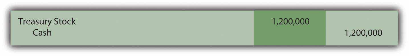 Figure 16.6 Purchase of Three Hundred Thousand Shares of Treasury Stock at a Cost of $4 Each