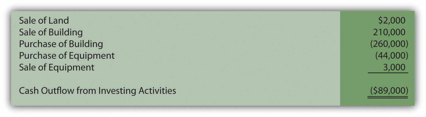 This second building transaction is also included within the investing activities but as a cash outflow.