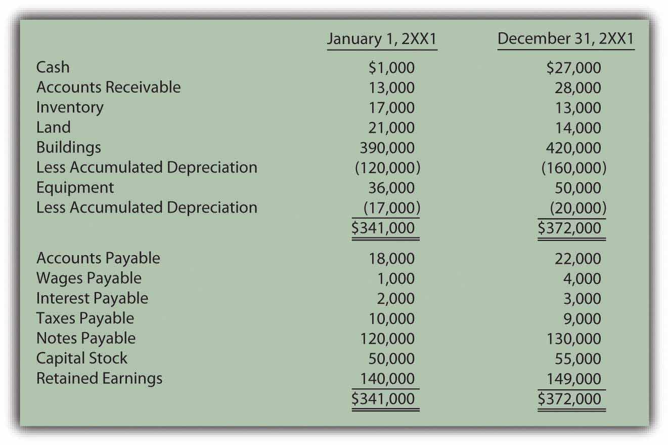 This transaction will be listed as a cash inflow within investing activities. However, the change in the buildings account is not yet fully explained. The above sale drops that account from $390,000 to $160,000 (a $230,000 reduction in cost). The final balance for the year was not $160,000 but rather $420,000, an increase of $260,000. Without mention of additional transactions, the assumption is made that another building was acquired during the period at that price.