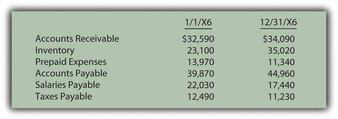Figure 17.39 Selected Balance Sheet Accounts from the Beginning and End of 20X6