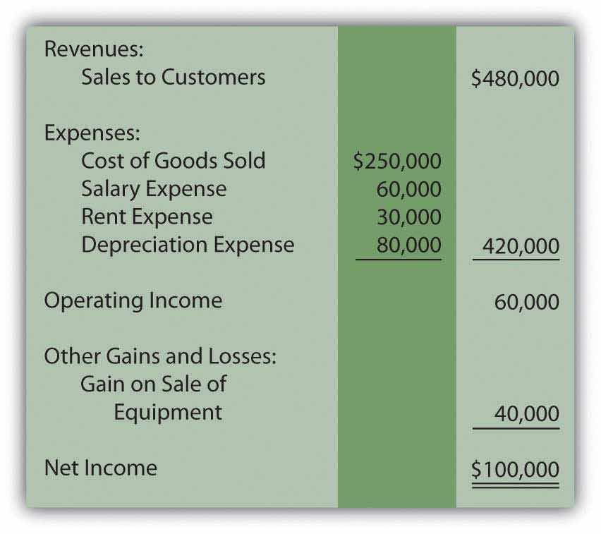 For illustration purposes, assume that that Liberto Company prepared the following income statement for the year ended December 31, Year One. This statement has been kept rather simple so that the conversion to cash flows from operating activities is not unnecessarily complex. For example, income tax expense has been omitted.