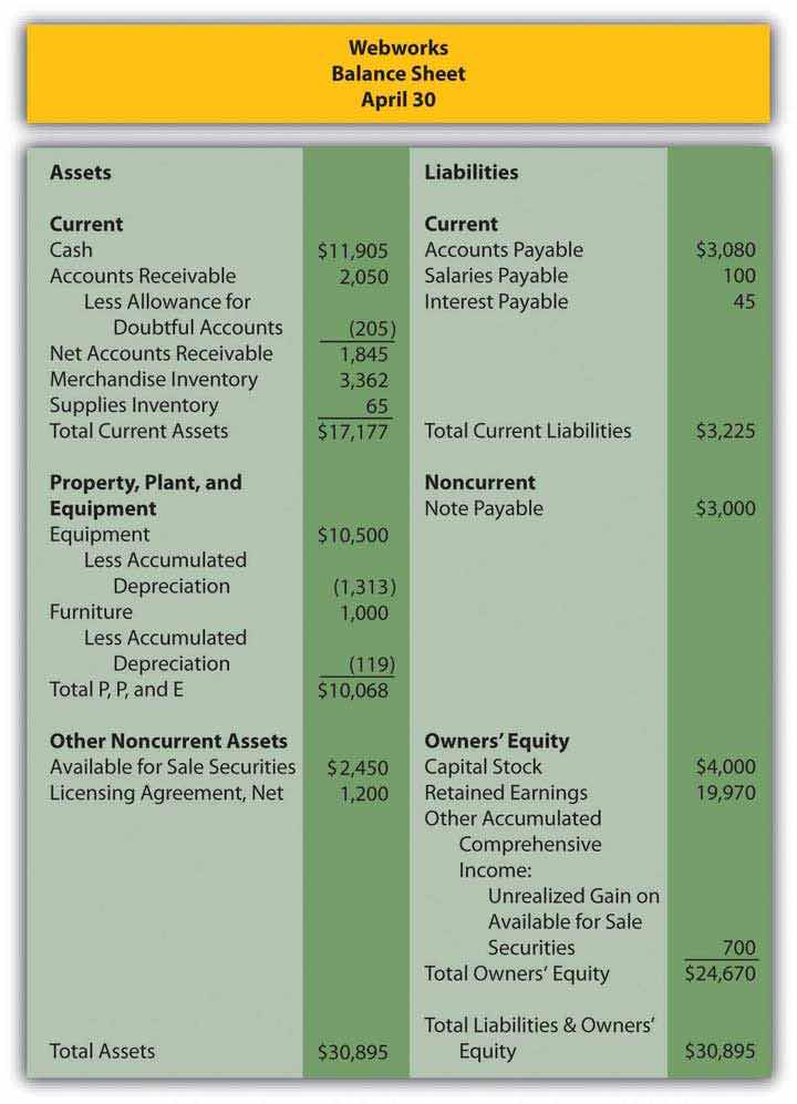 Here are Webworks financial statements as of April 30.