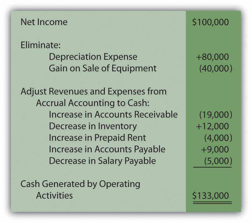 The $100,000 net income figure reported here by Liberto is based on the application of U.S. GAAP. However, the amount of cash generated by the company’s operating activities might be considerably more or much less than that income figure. It is a different piece of information.