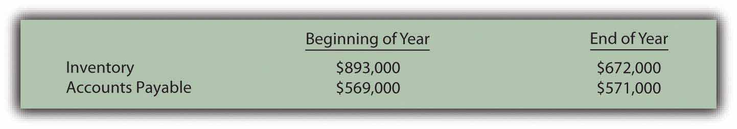 Figure 17.37 Change in Inventory and Account Payable Balances