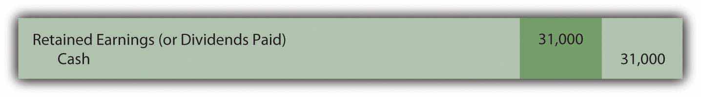 Retained earnings must have also declined by $31,000 to create the overall change of $9,000. As mentioned previously, other than net income, retained earnings are changed by virtually only one other event: the distribution of dividends. The information mentions that a dividend was paid this year and must have made up this $31,000 difference. Net income of $40,000 and a dividend of $31,000 do arrive at the reported increase in retained earnings of $9,000.