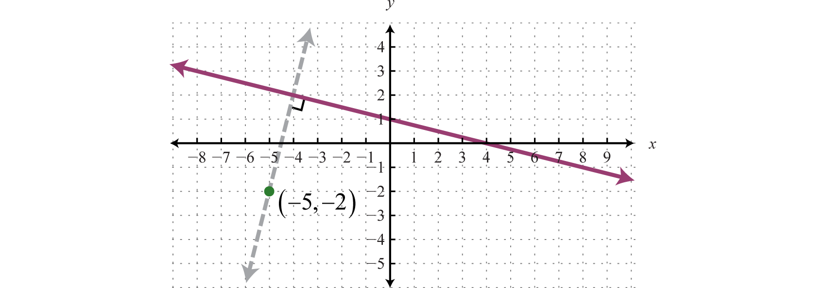 Geometrically, we see that the line , shown as a dashed line in the graph, passes through and is perpendicular to the given line