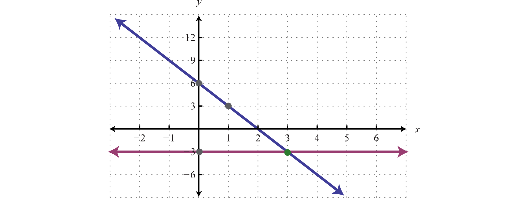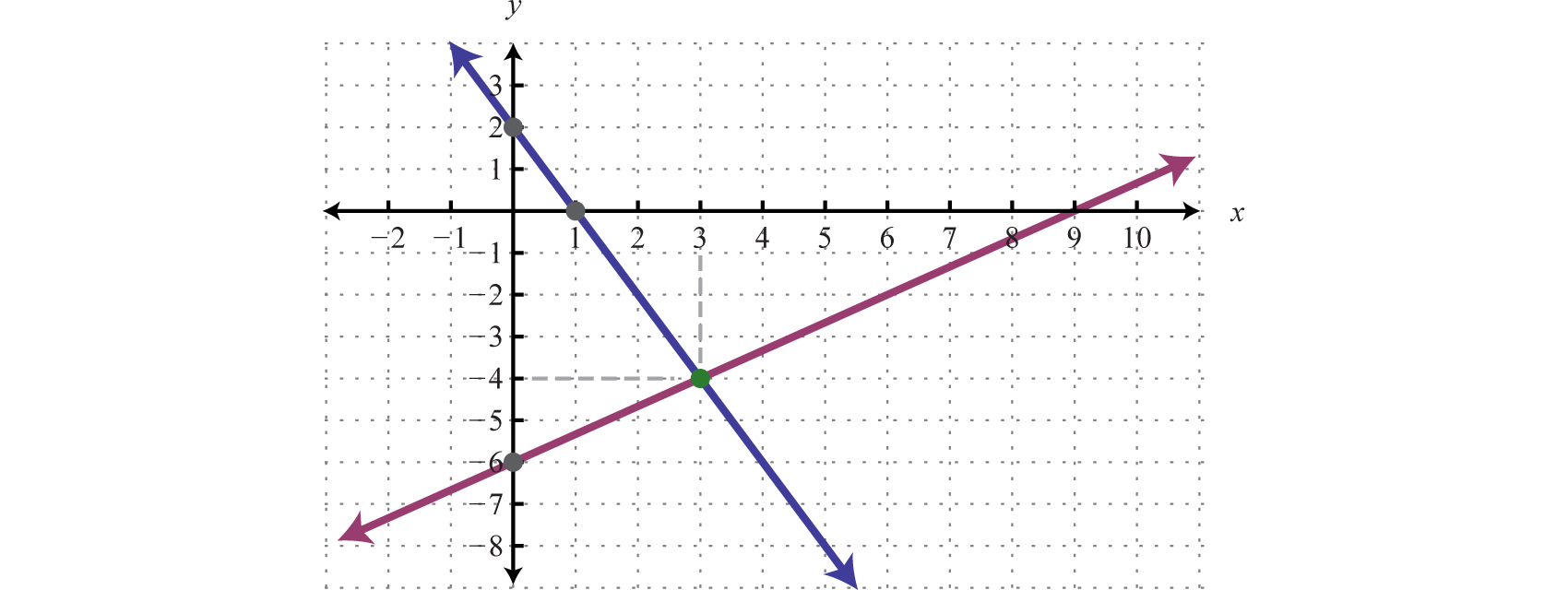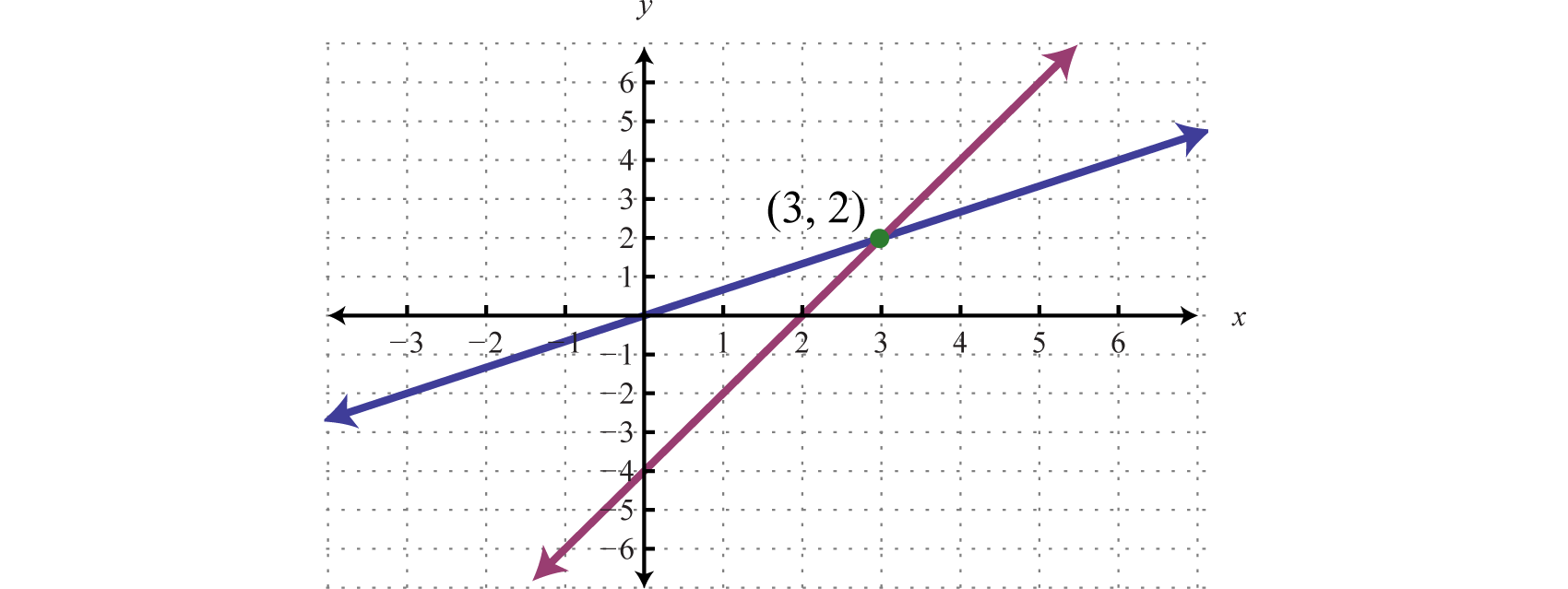 Geometrically, a linear system consists of two lines, where a solution is a point of intersection. To illustrate this, we will graph the following linear system with a solution of (3, 2):