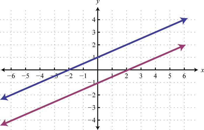 In slope-intercept form, we can easily see that the system consists of two lines with the same slope and different y-intercepts. Therefore, the lines are parallel and will never intersect.