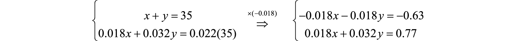 Eliminate x by multiplying the first equation by −0.03125.