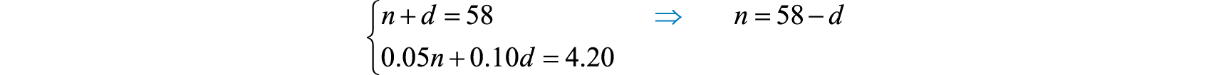 Now back substitute to find the number of nickels.