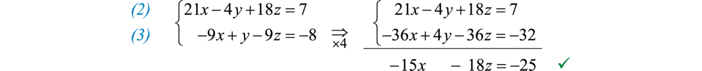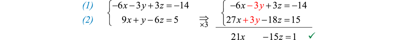 Step 3: Solve the resulting system of two equations with two unknowns. Here we solve by elimination. Multiply the second equation by 3 to line up the variable x to eliminate.