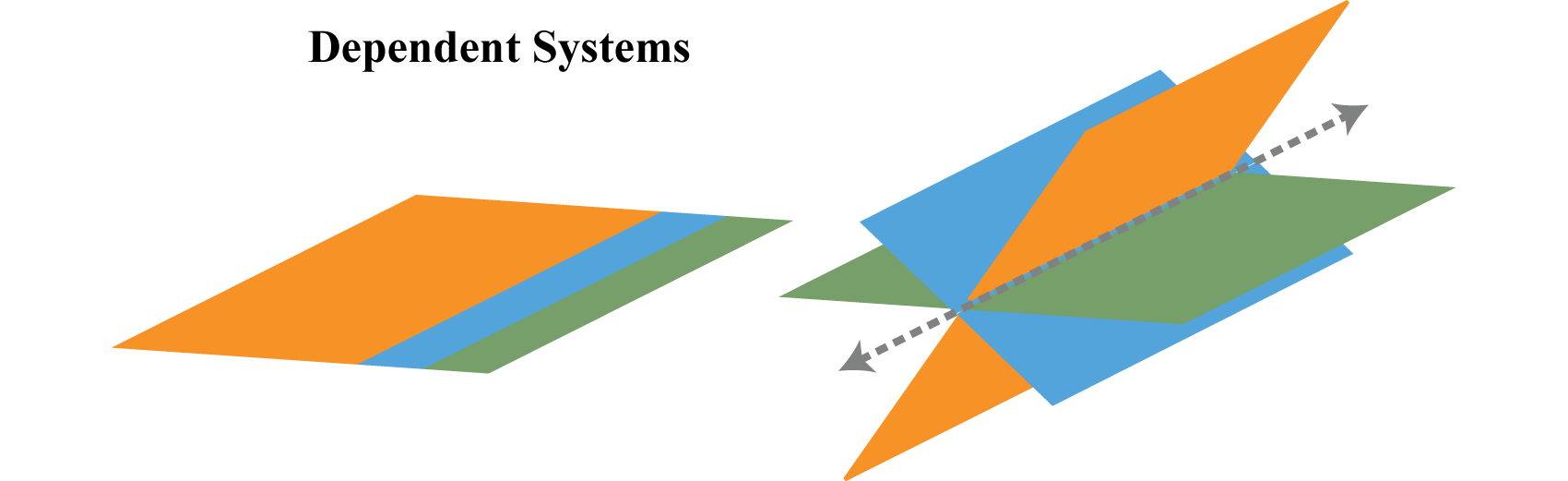 Just as with linear systems with two variables, some linear systems with three variables have infinitely many solutions. Such systems are called dependent systems.
