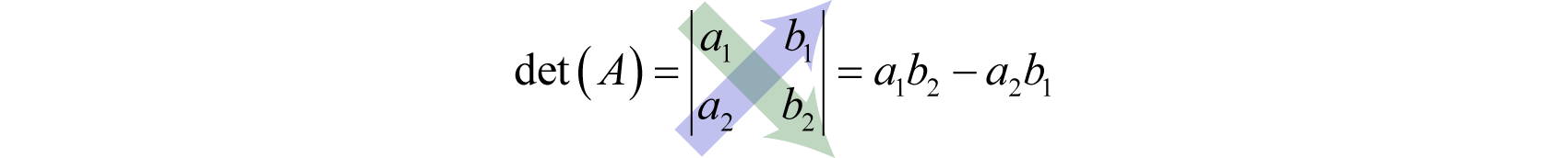 The determinant is a real number that is obtained by subtracting the products of the values on the diagonal.