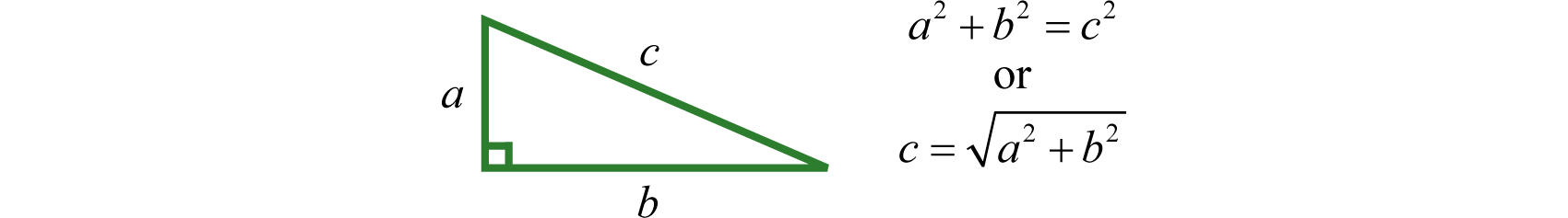 Frequently you need to calculate the distance between two points in a plane. To do this, form a right triangle using the two points as vertices of the triangle and then apply the Pythagorean theorem. Recall that the Pythagorean theorem states that if given any right triangle with legs measuring a and b units, then the square of the measure of the hypotenuse c is equal to the sum of the squares of the legs: In other words, the hypotenuse of any right triangle is equal to the square root of the sum of the squares of its legs.
