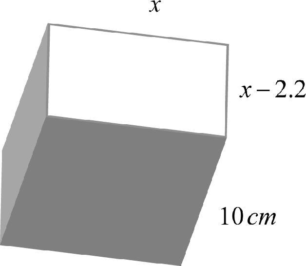 The width of a rectangular solid is 2.2 centimeters less than its length and the depth measures 10 centimeters.