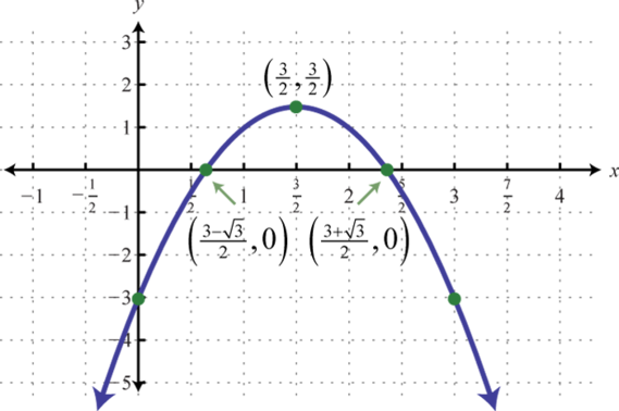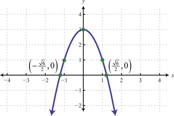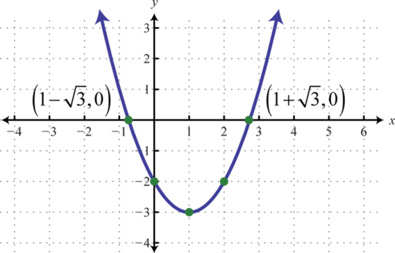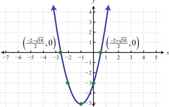 Approximating the x-intercepts using a calculator will help us plot the points. However, we will present the exact x-intercepts on the graph. Next, find the vertex.