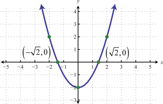 Here we obtain two real solutions for x, and thus there are two x-intercepts: