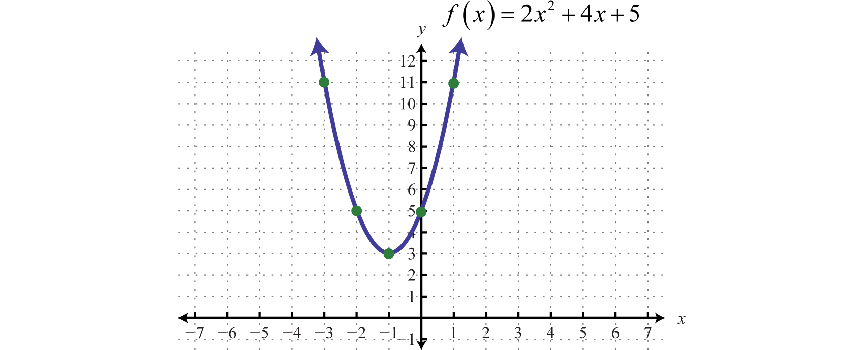 Generally three points determine a parabola. However, in this section we will find five points so that we can get a better approximation of the general shape. The steps for graphing a parabola are outlined in the following example.