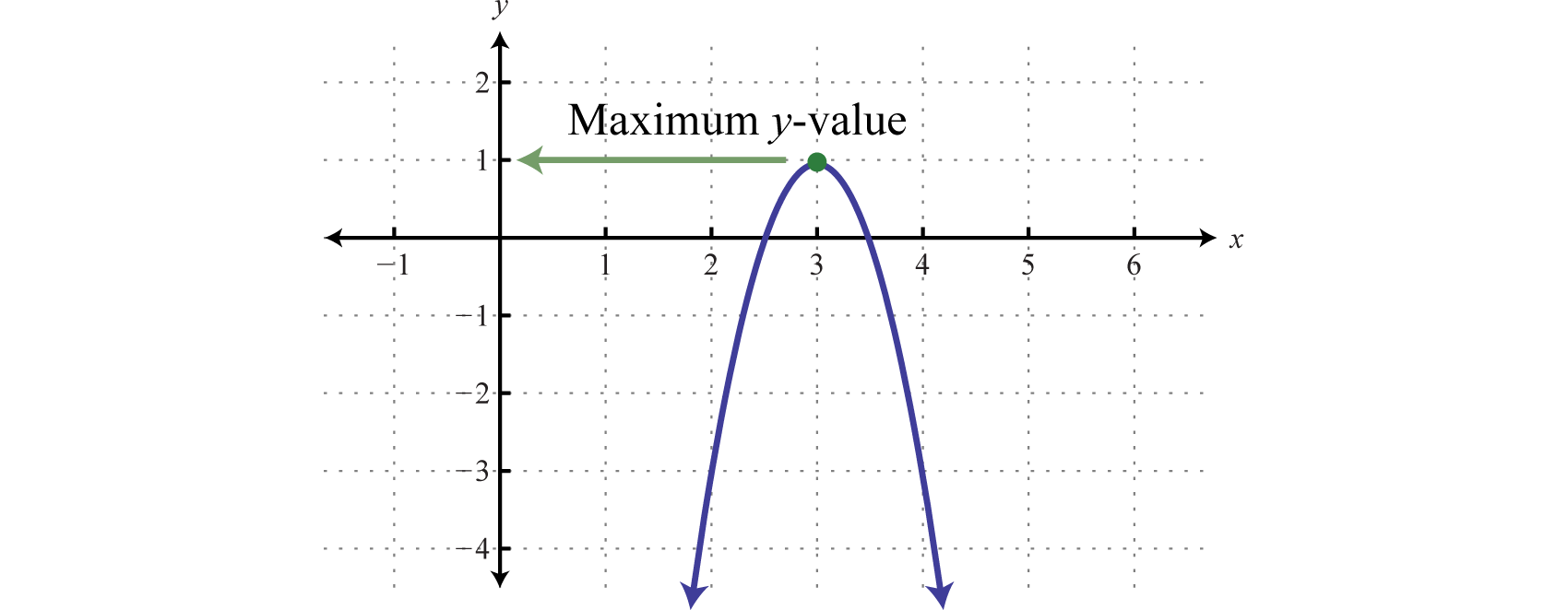 The vertex is (3, 1). Therefore, the maximum y-value is 1, which occurs where x = 3, as illustrated below: