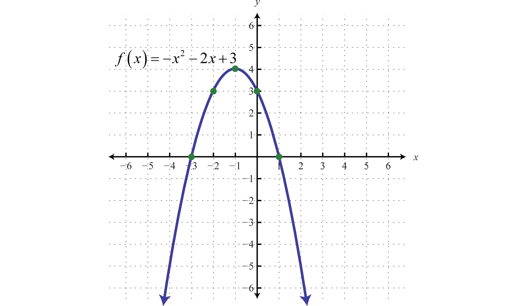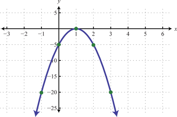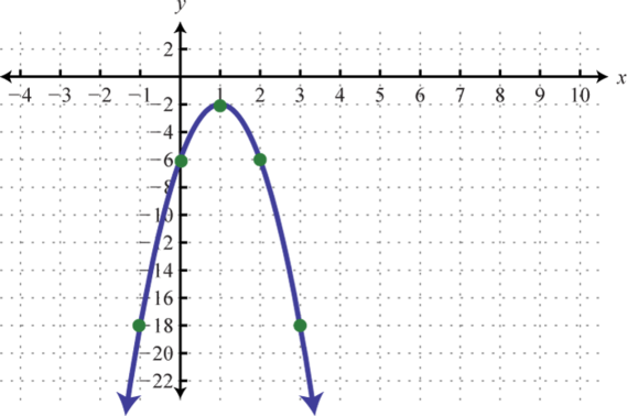 The parabola opens downward. In general, use the leading coefficient to determine if the parabola opens upward or downward. If the leading coefficient is negative, as in the previous example, then the parabola opens downward. If the leading coefficient is positive, then the parabola opens upward.
