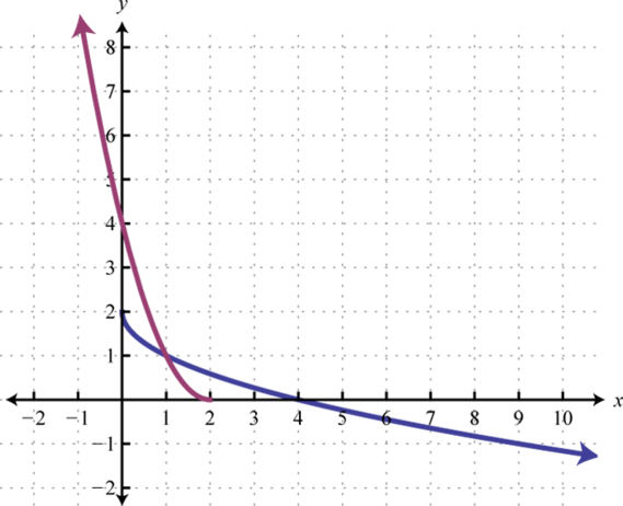 The graphs in the previous example are shown on the same set of axes below. Take note of the symmetry about the line