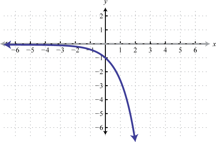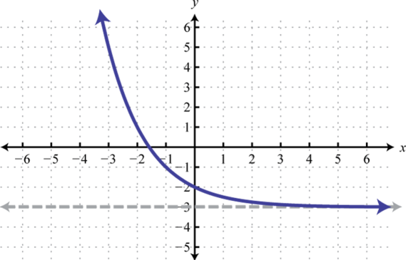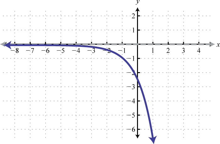 Note: Finding the x-intercept of the graph in the previous example is left for a later section in this chapter. For now, we are more concerned with the general shape of exponential functions.