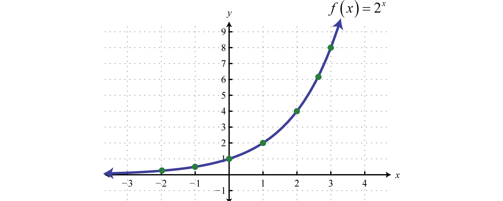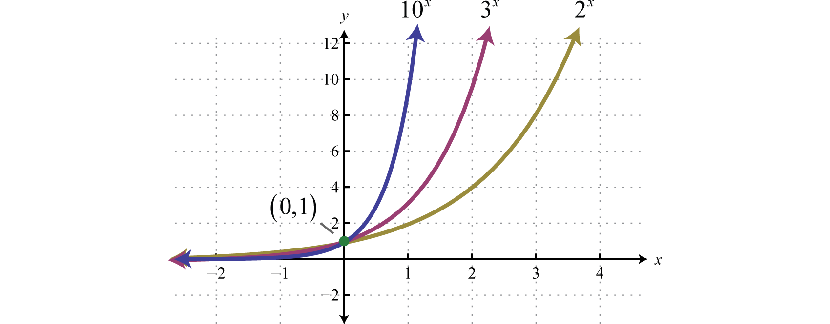 At this point in our study of algebra we begin to look at transcendental functions or functions that seem to “transcend” algebra. We have studied functions with variable bases and constant exponents such as or In this section we explore functions with a constant base and variable exponents. Given a real number where an exponential functionAny function with a definition of the form where and has the form,