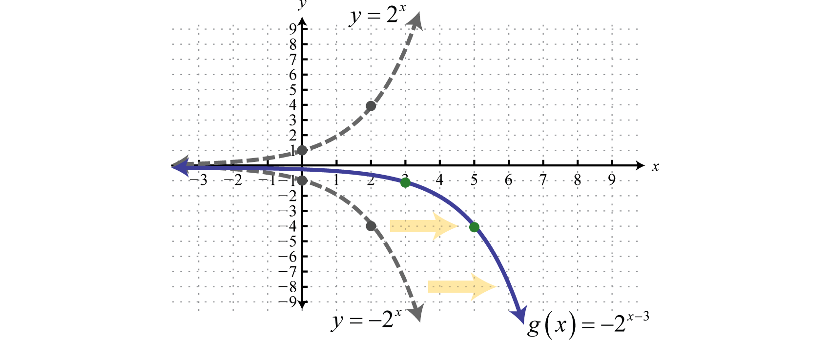 Furthermore, note that the graphs pass the horizontal line test and thus exponential functions are one-to-one. We use these basic graphs, along with the transformations, to sketch the graphs of exponential functions.