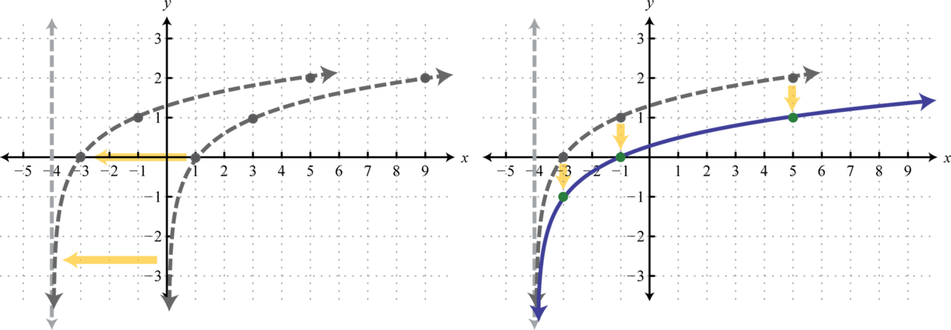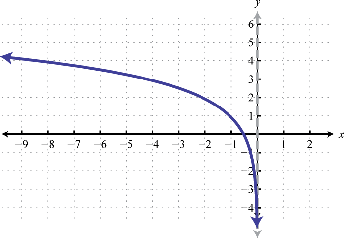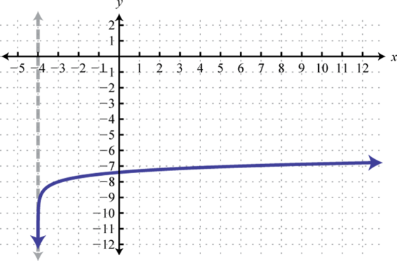 Notice that the asymptote was shifted 4 units to the left as well. This defines the lower bound of the domain. The final graph is presented without the intermediate steps.